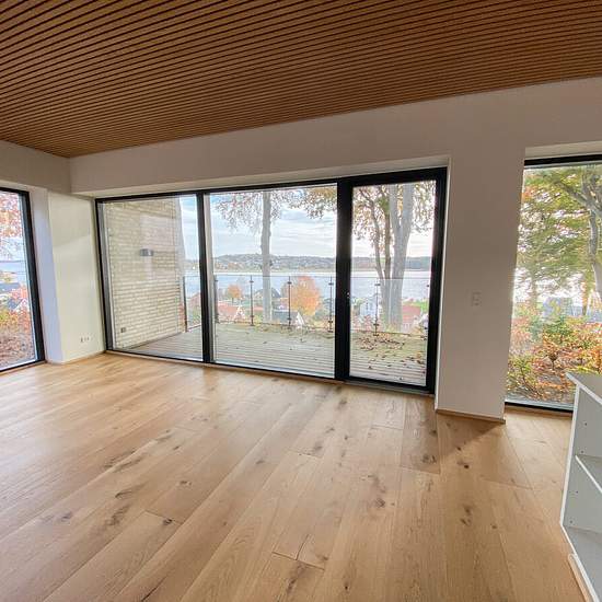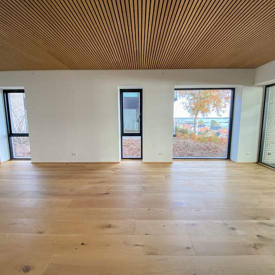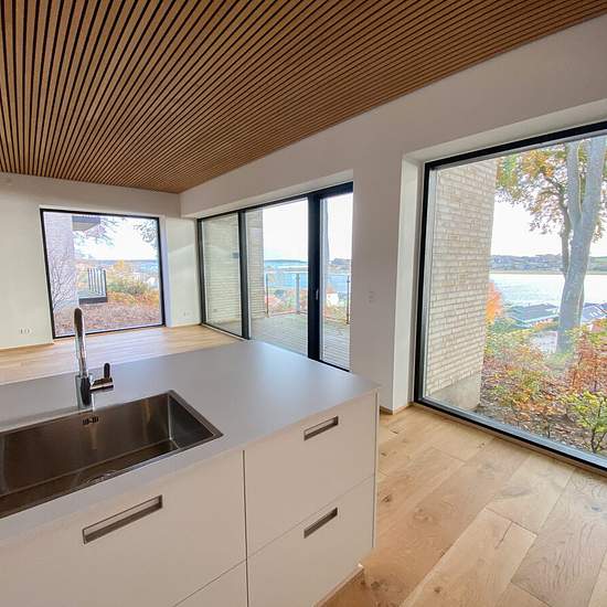 Skovhaven består af 26 boliger, hver tegnet med omhu af Kjær og Richter fra Aarhus, hvor nordisk minimalisme skaber ro og elegance. Store vinduespartier giver et sublimt lysindfald og et udstrakt udsyn over det bølgende landskab og fjorden. Indenfor møder du detaljer som herregårds-plankede gulve og lofter i egetræ, der elegant forbinder hjemmets indre med skovens natur. Køkkenet fra Svane i hvide elementer inviterer til madlavning og samvær, mens middagsbordet rammer samtaler mod udsigten som et levende maleri. Udsigten flankeres af Freds...