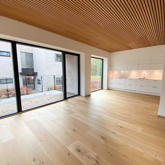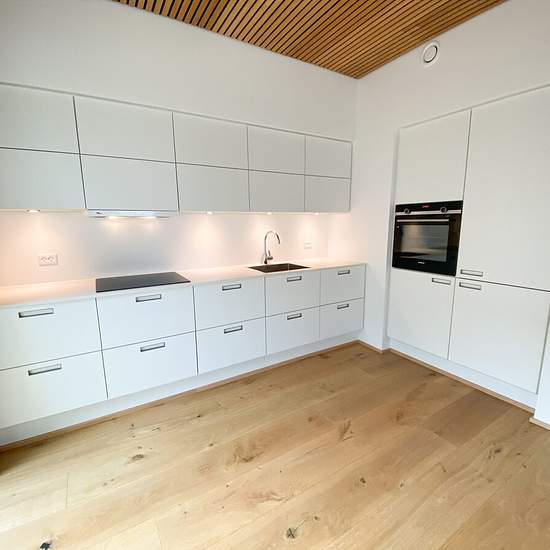 Skovhaven består af 26 boliger, hver tegnet med omhu af Kjær og Richter fra Aarhus, hvor nordisk minimalisme skaber ro og elegance. Store vinduespartier giver et sublimt lysindfald og et udstrakt udsyn over det bølgende landskab og fjorden. Indenfor møder du detaljer som herregårds-plankede gulve og lofter i egetræ, der elegant forbinder hjemmets indre med skovens natur. Køkkenet fra Svane i hvide elementer inviterer til madlavning og samvær, mens middagsbordet rammer samtaler mod udsigten som et levende maleri. Udsigten flankeres af Freds...