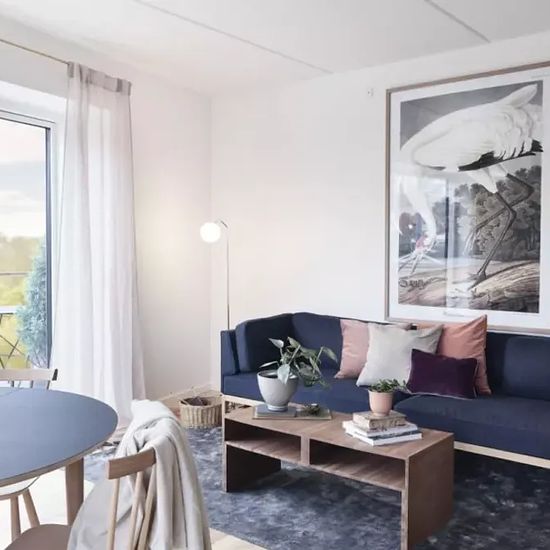 Lejligheden Lejligheden fremstår lys og rummelig med åbent køkken, spiseplads og opholdsstue. Kvaliteten er i højsædet med matlakeret gulv i ask, hvidt køkken fra Invita, der er udstyret med det nyeste inden for hårde hvidevarer - alle fra Bosch Siemens i energiklasse A+. Badeværelset er stort nok til at rumme den travle familie og har indbygget gulvvarme til de køligere dage. På badeværelset finder du også en integreret energivenlig vaskesøjle fra Bosch Siemens. OBS: ønskes der mål af lejligheden skal du selv huske opmålings udstyr til frem...