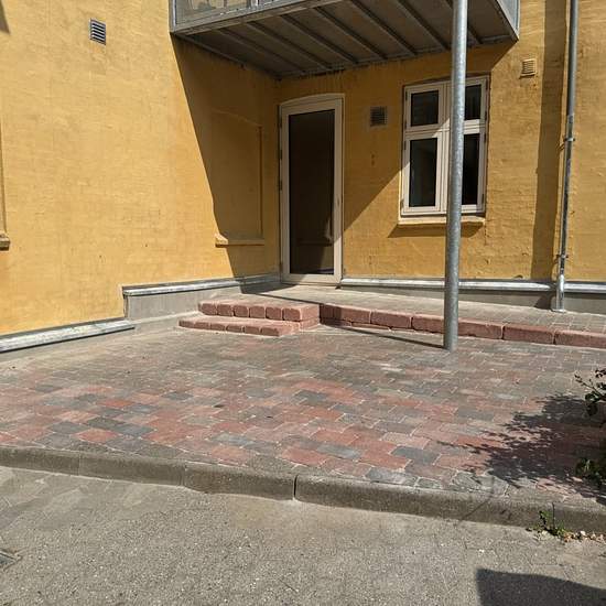 Total NY renoveret stuelejlighed med stor sydvendt terrasse, dørtelefon og hyggeligt gård- og haveanlæg. Dejligt stor køkken og stue ud i et. Handicapvenlig. Ejendommen er gammel, men præsentabel og moderniseret, beliggende i gammelt kvarter med sjæl! Få minutter til gågaden og indkøbsmuligheder.
