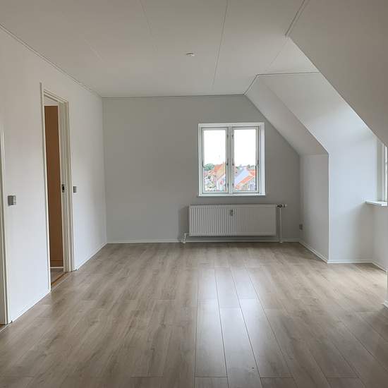 Hyggelig indrettet lys taglejlighed, 3 værelses med laminatgulv, vinduer med 3-lags lavenergiruder. Stue en suite. Stor vestvendt altan. Mulighed for at blive skrevet op til p-plads i gården. Dørtelefon. Delevenlig. Tilhørende depotrum. Lejligheden er beliggende i en ældre præsentabel ejendom, der løbende er moderniseret, i gammel kvarter med sjæl, 10 minutters afstand til gågade og indkøb. Trappevask, vask/tørretumbler og kold vand er inkluderet i huslejen. Husdyr tilladt under særlige vilkår, forhør nærmere på kontoret.