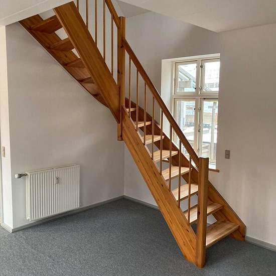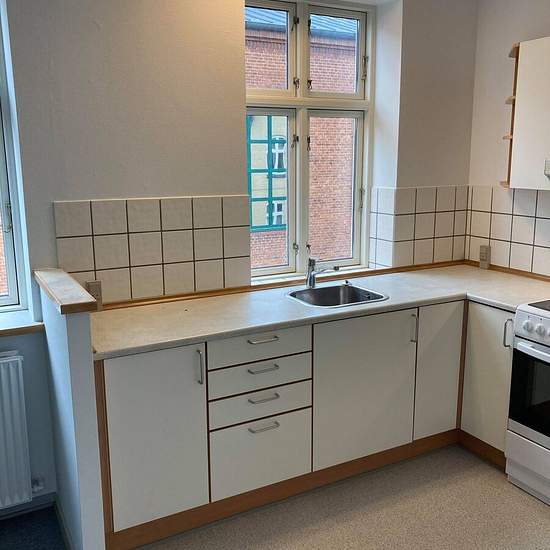 Velholdt 2-etages lejlighed med store rum. Lejligheden har sydvendt altangang, gård- og haveanlæg. Energirigtig moderniseret med flot køkken/alrum, bad, 3-lags lavenergi vinduer. Attraktivt beliggende i gammelt kvarter med sjæl, 5 min. gang til gågaden og centrum. Lejligheden ligger i en ældre præsentabel ejendom, der løbende er moderniseret - i et kvarter med sjæl. Vask/tørretumbler og kold vand er inkluderet i huslejen. Husdyr tilladt under særlige vilkår, forhør nærmere på kontoret