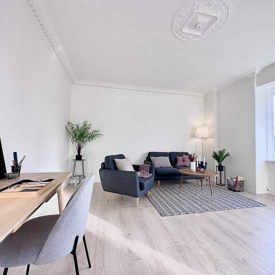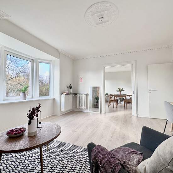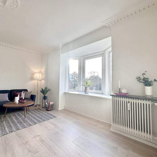Velkommen til denne charmerende store to-værelses lejlighed lige ved VIA og Fængslet. Lejligheden er ret unik, fordi den gamle stuk i stuen er blevet bevaret. Det giver bare en helt speciel hyggelig stemning i lejligheden. I stuen er der også en stor karnap, hvor man kan lave en hyggekrog med puder og tæpper. Lejligheden er blevet renoveret med nyt køkken og bad. Du har Netto, Platform K, VIA, Fængslet og Fitness X i gåafstand. Nyt køkken med plads til installation af egen opvasker, to stuer en-suite, stort soveværelse med faste skabe t...
