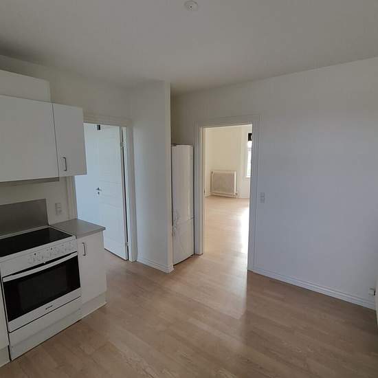 Dejlig central 3- værelses lejlighed, 8620 Kjellerup Dejlig stor og lys 3-værelses lejlighed på 80m², beliggende i centrum af Kjellerup. Fra lejlighedens indgangsdør kommer man ind i et lille ”vindfang”. Herfra er der adgang til lejlighedens ene stue, og en fransk dør til lejligheden anden lyse stue, begge med udsigt over torvet. Fra den første stue er der adgang til lejlighedens køkken. Køkkenet byder på masser af skabsplads og har komfur, køle- fryseskab og opvaskemaskine. I køkkenet er fin plads til en “spisekrog”. Fra køkkenet er der ad...
