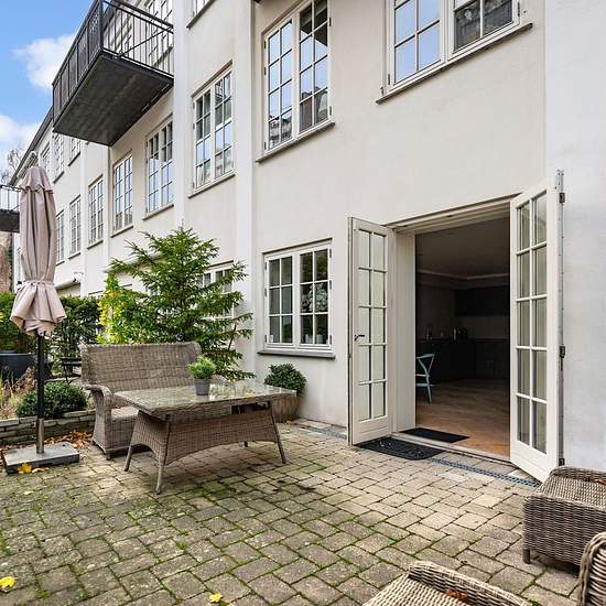 Ejendommen i Amaliegade ligger gemt inde bag porten i det smukkeste palæ i København. Ejendommen er fra 1948, og med 129 m2 fordelt på en overetage og en underetage er lejligheden Amaliegade 13G godt nok en stor lejlighed, men den er indrettet til bohemen, til kæresteri eller det modne par, som gerne vil til byen og al den ballade, der ligger lige om hjørnet. Stor terrasse. Selv tak. Lejligheden er renoveret i 2014, alt er uforskammet lækkert, alt er lige til at flytte ind i. Alt i byen er tæt på Amalienborg deler Amaliegade, herfra er alt i...