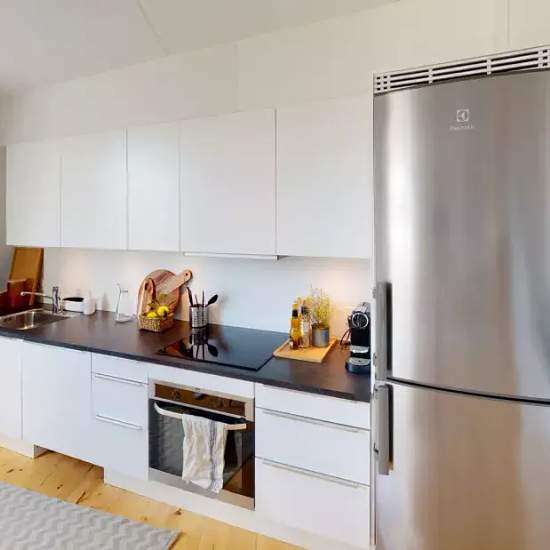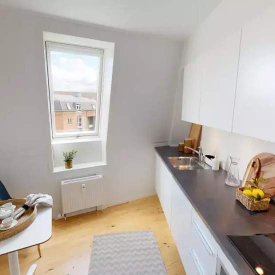 Lejligheden Lejligheden er opført i lyse og tidsløse materialer, med stort lysindfald, solide parketgulve samt hvidmalede vægge, lofter og paneler. Den rummelige stue leder op til et funktionelt køkken med god skabsplads, komfur, køle- og fryseskab, emhætte samt opvaskemaskine. Badeværelse byder på separat bruseniche og vaskesøjle. I soveværelset findes der skabe, med mulighed for opbevaring, og der er desuden tilknyttet et 3-4 kvm depotrum i kælderen. Det er muligt at ansøge om husdyrtilladelse i alle vores lejemål. NB: billederne viser ikk...