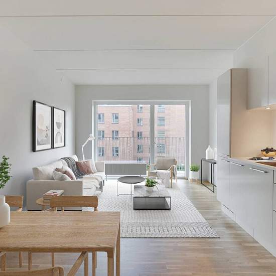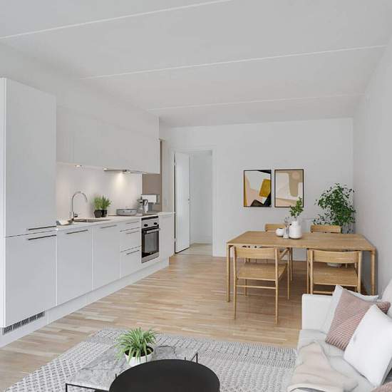 Oplysninger om bygningen og området 3-værelses lejlighed – Green Square Garden Boligen De 3-værelses lejligheder er ideelle til både par og mindre familier, der ønsker en moderne bolig med plads til samvær og ro. Planløsningen byder på to gode værelser, et lyst opholdsrum og et køkken i åben forbindelse, som gør rummet indbydende og socialt. Badeværelset er opført i lyse materialer, og flere boliger har egen altan eller terrasse. Ejendommen Green Square Garden tilbyder trygge rammer med grønne fællesarealer, elevator og gode adgangsforhold....