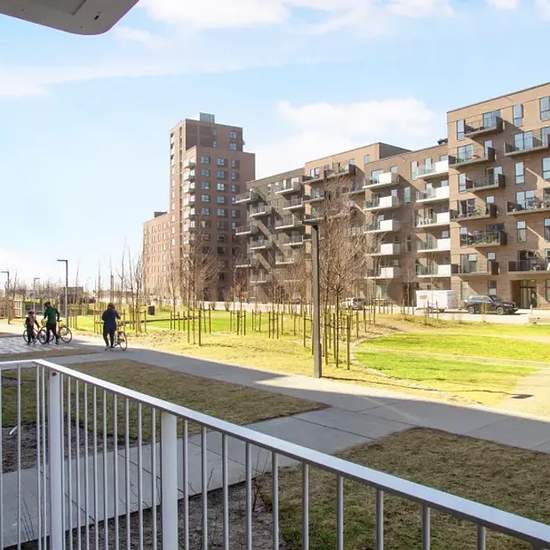 Lejligheden Lejligheden er indrettet med et stort alrum, hvor køkken og stue smelter sammen og skaber en rummelig atmosfære. De store vinduespartier trækker lys ind i lejligheden fra alle vinkler. Dertil er boligen udstyret med et moderne køkken fra Invita, hårde hvidevarer fra Bosch Siemens samt praktisk skabsplads i mastersoveværelset. Fra gangen har du adgang til det rummelige og indbydende badeværelse med gulvvarme, formstøbt marmorvask, væghængt toilet samt vaskesøjle. Fra stuen har du udgang til en stor møblérbar altan, der giver et pr...