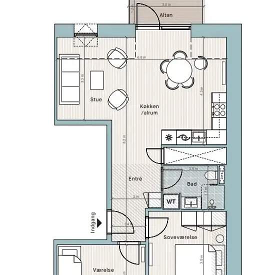 - 3 værelser