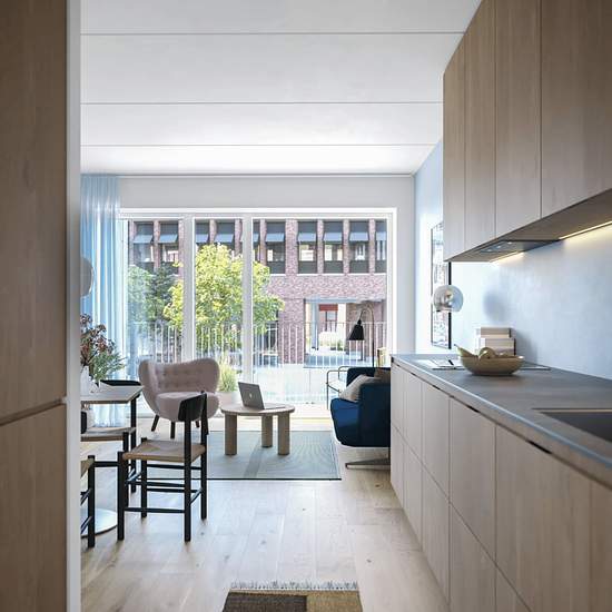 Nu udbydes en sjælden mulighed for at flytte ind i en splinterny treværelses lejlighed i det arkitektonisk spændende byggeri Elmeholm i Sydhavnen, som står klar til indflytning om blot en måned. Boligen forener moderne byliv med maritime omgivelser og grønne uderum, hvor lysindfald og materialevalg er i absolut særklasse. Hjertet i hjemmet er det store køkken-alrum, hvor et stilrent snedkerkøkken i egetræ med alt i moderne hvidevarer skaber de perfekte rammer for både madlavning og samvær. Fra alrummet er der direkte udgang til en privat alt...