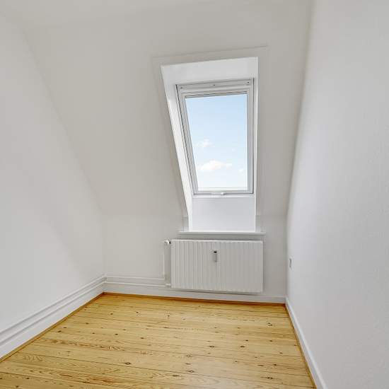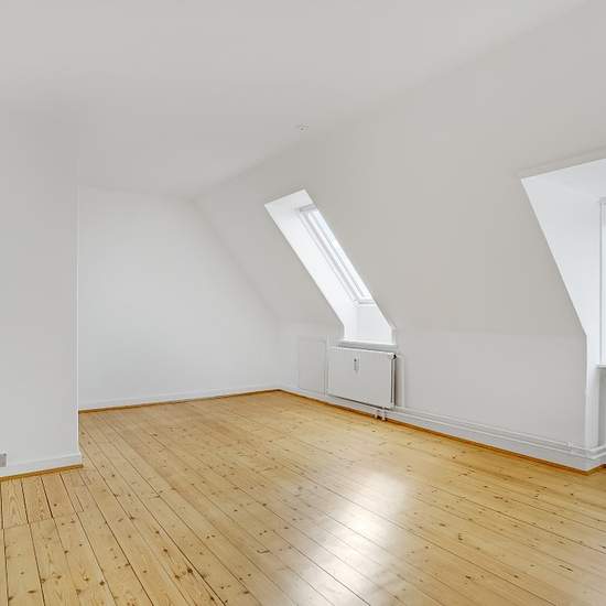 Velkommen til en indflytningsklar og veludnyttet 3-værelses lejlighed i tagetagen, hvor skråvægge, ovenlysvinduer og lyse trægulve skaber en charmerende og behagelig atmosfære. Boligen byder på 63 m2 fordelt på entré, køkken, stue, soveværelse, værelse samt et lyst badeværelse – oplagt til singlen, parret eller den lille familie, der ønsker en praktisk base tæt på hverdagens goder. Lejligheden åbner til en entré med adgang til et lyst badeværelse med vindue, brus, spejlskab og enkle, tidløse fliser – en funktionel løsning med godt dagslys f...