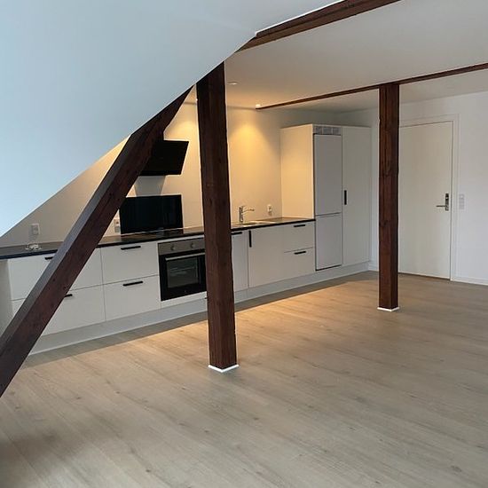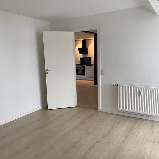 Skøn og total renoveret 3 vær lejlighed på 91 m2 (2026) To separate værelser og stue/køkkenalrum. Pænt velfungerende badeværelse med bruseniche, egen vaskemaskine og tørretumbler. Alt i hårde hvidevarer. Egen altan, samt depotrum i kælderen. Beliggende få min. gang fra city tæt ved uddannelsesinstitutioner, indkøbsmuligheder, gågaden, slotssøen og bylivet.