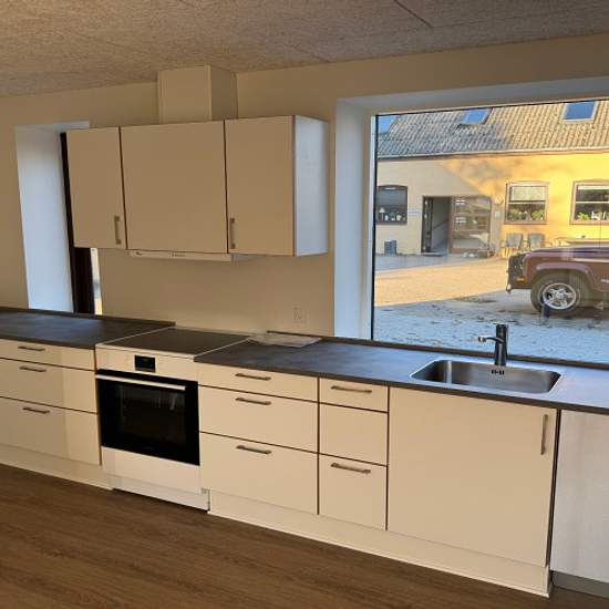 Nyrenoveret 3 værelses lejlighed i Langeskov Stor flot lejlighed, der netop er totalrenoveret med blandt andet, nyt køkken og direkte adgang til stor fælles have, og egen terrasse. Fælles kælder og cykelrum. Husdyr er ikke tilladt. Tæt på Langeskov station med IC stop, og tæt på indkøb, skole og fritidsaktiviteter.