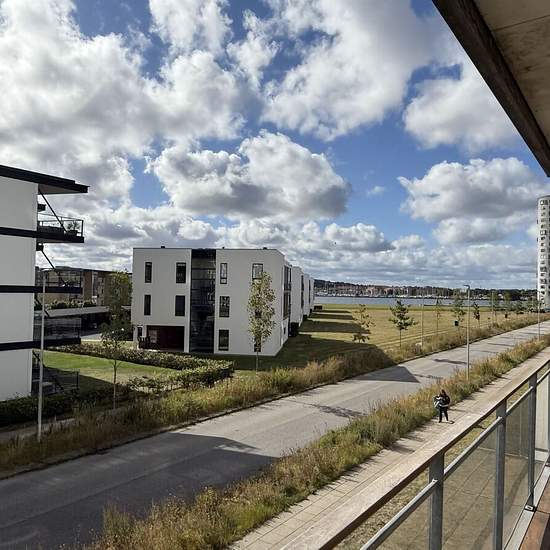 Lejligheden er 120 m2 og indeholder 2 gode soveværelser, stort køkken alrum, rummeligt badeværelse med brusekabine samt en fin lys stue med direkte udgang til lejlighedens altan. Lejligheden er udstyret med opvaskemaskine, vaskemaskine med tørretumbler. Der er parkering til lejligheden. Julius Posselts Vej ligger yderst eksklusivt placeret lige ud til Limfjorden med god afstand til overfor liggende naboer Lejligheden ligger samtidig centralt i Nørresundby med kun 500 meter til Lindholm Station, fitness og cafeer. Strandparken er lige ved s...