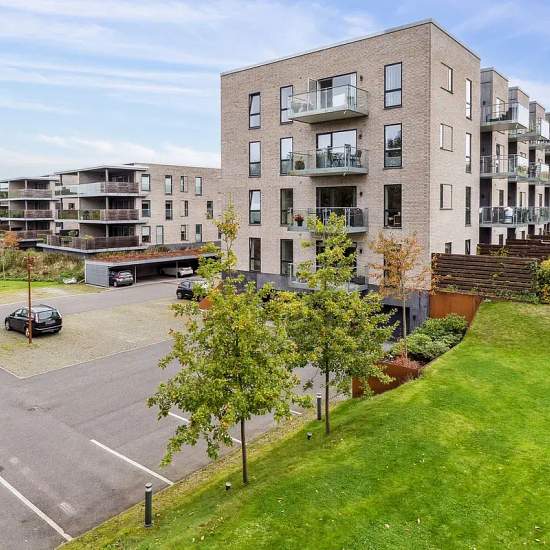 Velkommen til denne lejlighed hvor lys og moderne komfort møder en indbydende beliggenhed. En indflytningsklar bolig med en behagelig atmosfære. Lejligheden byder på en rummelig indretning med et lyst opholdsrum, der har store glaspartier, som skaber en smuk forbindelse til den overdækkede altan. Her er der plads til både spisebord og sofasektion, hvilket gør det til et perfekt samlingspunkt. De to værelser er indretningsvenlige, og det ene værelse har indbyggede skabe, ideelt som soveværelse. Badeværelset er moderne med en separat brusenic...