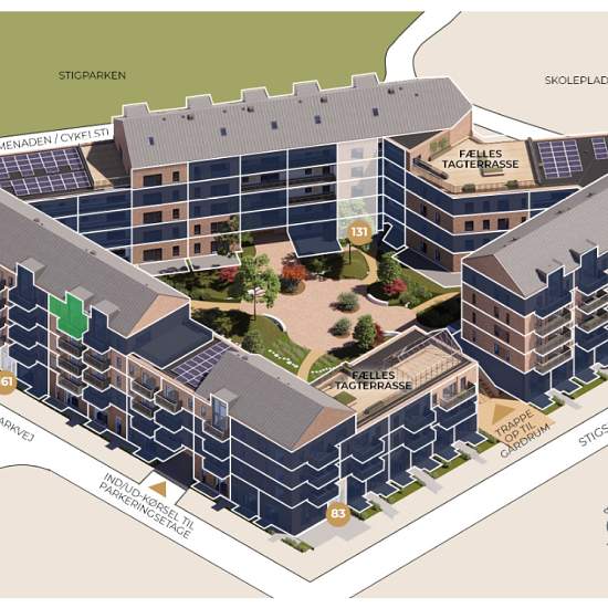Velkommen til denne lejlighed hvor moderne design møder naturens ro. En indflytningsklar bolig med en behagelig atmosfære. Lejligheden byder på en lys og rummelig stue, der giver en indbydende stemning. Det åbne køkken/alrum er udstyret med et lækkert HTH køkken, hvor man finder alle hårde hvidevarer, der gør madlavningen til en fornøjelse. Fra stuen er der adgang til et stilrent badeværelse med vaskesøjle samt to velindrettede værelser, der er udstyret med garderobeskabe. Den store altan indbyder til afslapning med skøn udsigt til park og ...