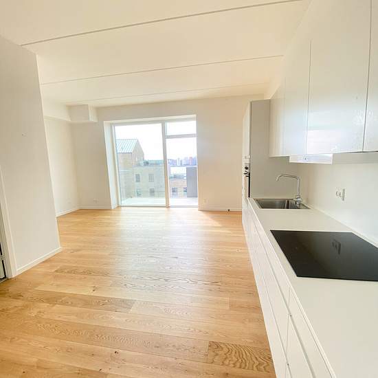 3-værelses lejlighed i nybygget ejendom, med fantastisk altan! Bliv lejer af denne ekstraordinære 3-værelses lejlighed på 67 gode kvm. Lejligheden er beliggende i det nyopførte Fjordpynten, i Nørresyndbys nye bydel, Stigsborg. Her får du en beliggenhed helt i top, med udsigt over fjorden, den grønne park og byen. Når du træder ind i lejligheden, mødes du af det store og lyse køkken-alrum, hvor lyset strømmer ind gennem de store vinduespartier. Her kan du glæde dig til at lave mad i det lækre grebsfrie HTH-køkken med Corian-bordplade og ful...