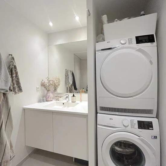 Velkommen til denne lejlighed hvor lys møder kvalitet. En indflytningsklar bolig med en behagelig atmosfære. Du træder ind i lejlighedens entré, som fører dig til det store og lyse køkken-alrum. Her strømmer lyset ind gennem de store vinduespartier, og du kan glæde dig til at tilberede måltider i det stilfulde, grebsfrie HTH-køkken med Corian-bordplade og fuld AEG hvidevarepakke. Fra køkken-alrummet er der direkte adgang til altanen, hvor du kan nyde de varme sommeraftener med en dejlig udsigt over den grønne have. To gode værelser, hvoraf ...