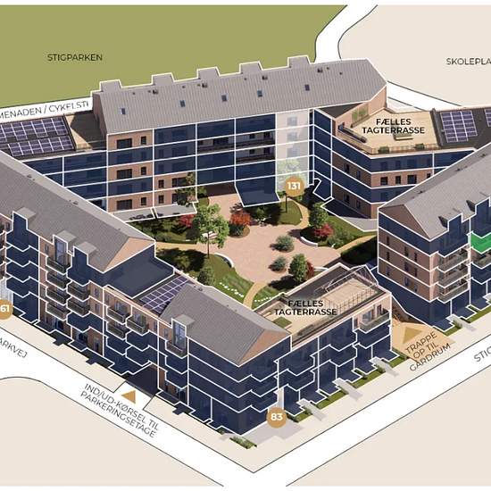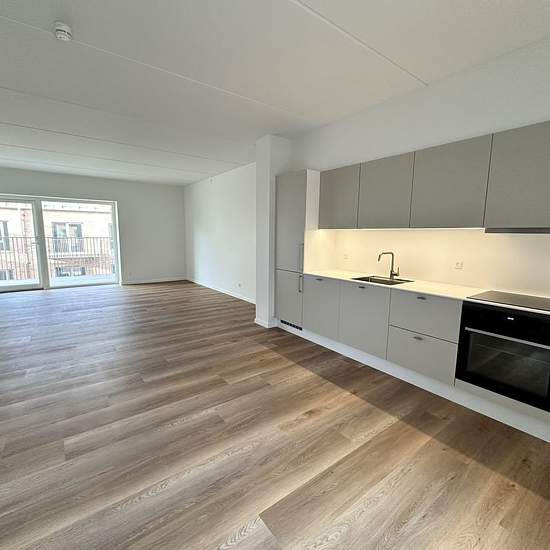 Velkommen til denne 3-værelses lejlighed hvor moderne design møder naturens ro. En indflytningsklar bolig med en behagelig atmosfære. Lejligheden byder på en lys entre med vinduespartier mod det fredelige gårdareal, der skaber en indbydende stemning. Det åbne leverum rummer et smukt HTH køkken, der er udstyret med alt i hårde hvidevarer, og som naturligt opdeler køkken/alrum fra den rummelige stue. Fra stuen er der adgang til den store, vestvendte altan, hvor solens stråler kan nydes hele eftermiddagen. De to gode værelser har faste skabe, ...