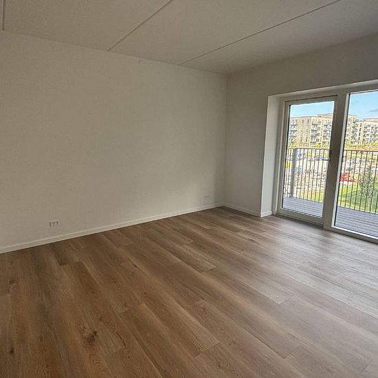 Velkommen til en moderne og veldisponeret lejlighed i StigsborgHus – tæt på fjord, park og strand. Lejligheden tilbyder både en nordvendt altan med rolig udsigt. Indenfor mødes man af et lyst og åbent køkken-alrum med store vinduespartier, der skaber et flot lysindfald og en behagelig atmosfære. Køkkenalrummet har god plads til både spisebord og sofaarrangement, hvilket gør det til hjemmets naturlige samlingspunkt. Lejligheden indeholder desuden to rummelige soveværelser, begge med indbyggede skabe, samt et stilrent badeværelse med HTH-el...
