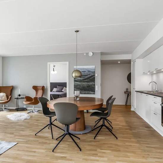 Lejligheden er indrettet med fokus på komfort, funktionalitet og en lys, stilren indretningsstil. Planløsningen er veludnyttet, rummene er nemme at indrette, og der er gulvvarme i alle rum. Køkken og opholdsrum ligger samlet i et stort og lyst køkken/alrum med stilrene moduler og kvalitetshvidevarer. De store vinduespartier giver et behageligt lysindfald, og der er direkte udgang til altanen, som har god plads til udeliv i sommerhalvåret. Tekstilparken kombinerer grønne omgivelser med kort afstand til Odense centrum. Her bor du tæt på skov, ...