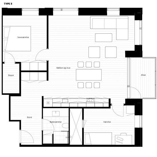 - 3 værelser