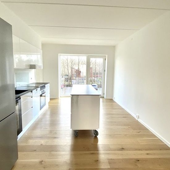 3 værelses – Munkebjergvænget 34, 1. th – Odense M Eksklusiv 3-værelses lejlighed i nyopført ejendom – 1. sal, 92 m² I en smuk og moderne ejendom udbydes nu denne højkvalitets 3-værelses lejlighed på 92 m² , beliggende på 1. sal – perfekt til den kvalitetsbevidste lejer, der sætter pris på luksus, komfort og gennemtænkte detaljer. Lejligheden indeholder bl.a.: Stilrent højglans køkken med flytbar køkkenø og komplette Miele-hvidevarer – herunder opvaskemaskine og integreret vinkøleskab med zoner til både rød- og hvidvin. Køkkenet er i å...