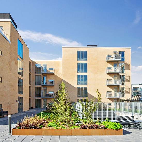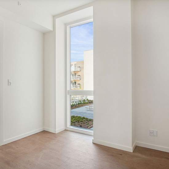 Du træder ind i et funktionelt køkken-alrum, som ligger i åben forbindelse med stuen, hvorfra der er direkte adgang til boligens altan. Der er ét eller to separate værelser afhængigt af boligens størrelse. Der er indbyggede skabe i soveværelserne. Du får et godt badeværelse med vaskefaciliteter, og der er gulvvarme i alle rum. Det er muligt at få en bolig i ét- eller to-plan. Boligerne er i udgangspunktet ens i deres udformning og kvadratmeter, med den forskel at lejlighederne i to-plan har ét stort vinduesparti fra gulv til loft i køkken-a...