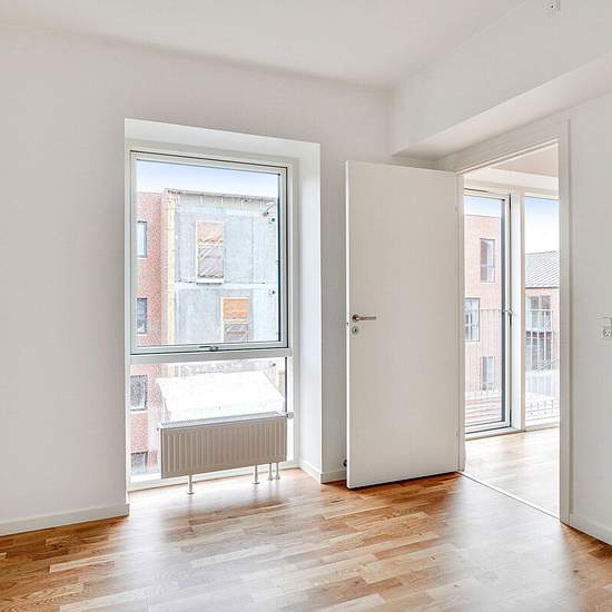 Alle lejligheder har et køkken-alrum i åben forbindelse med stue. I de ét-værelses lejligheder fungerer køkken-alrummet ligeledes som soveværelse. Ellers har du ét eller to separate værelser. Badeværelset er velindrettet med vaskefaciliteter og gulvvarme. Alle lejemål har egen terrasse eller altan. Hårde hvidevarer Boligerne har alt i hårde hvidevarer inklusive vaskemaskine, tørretumbler og opvaskemaskine. Husdyr Lejere kan ansøge om tilladelse til at holde indekat og hund på adressen. Udekatte er ikke tilladt. Se vores samlede husdyrsreg...