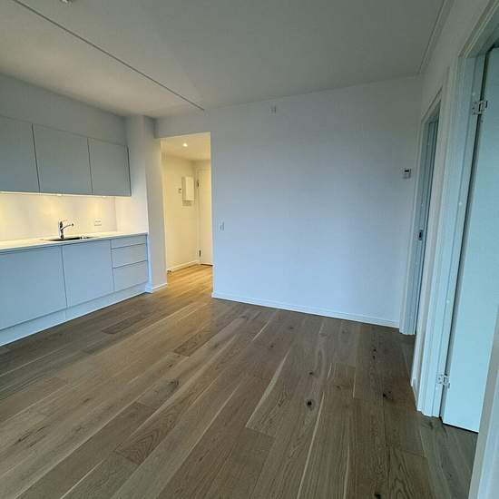 3-værelses, populær blandt par eller venner som ønsker at dele en lejlighed. Lejligheden har et åbent opholdsrum med plads til en lille sofa og et mindre spiseområde. Badeværelset er rummeligt og med en kombineret vaskemaskine, så man undgår vasketider og en vaskekælder. Udover er fint opholdsrum har lejligheden 2 gode værelser.