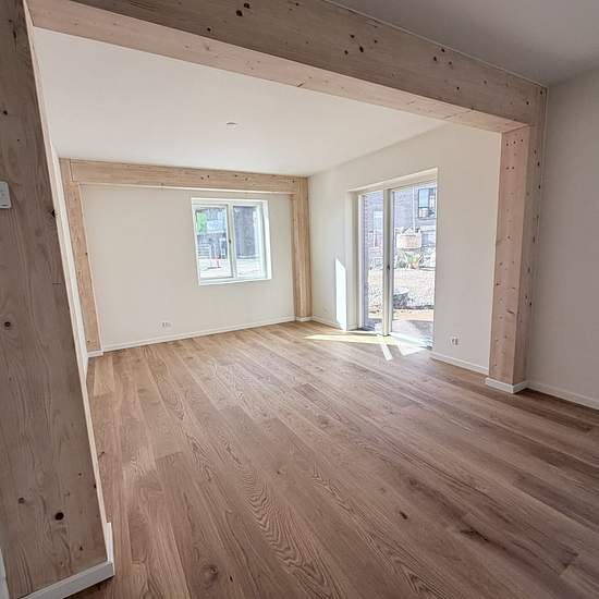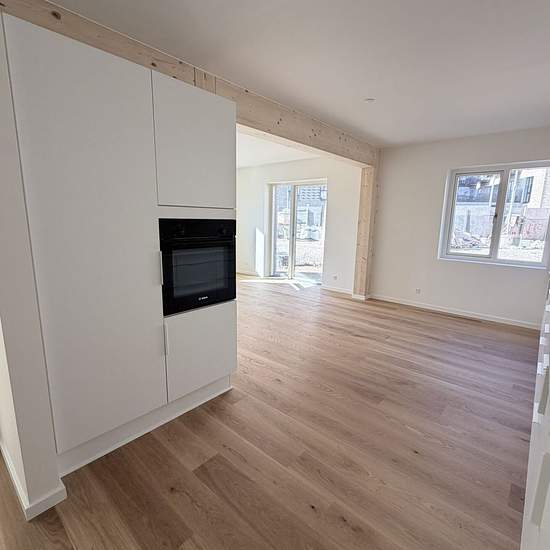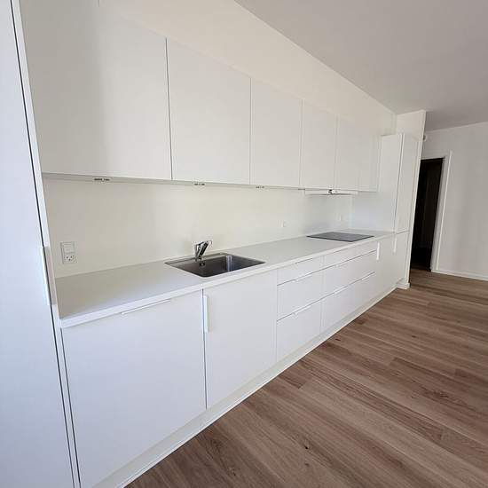 Rummelig 3-værelses lejlighed med åbent opholdsrum med god plads til at samles hele familien. Fra opholdsrummet er der udgang til en stor hjørneterrasse. I opholdsrummet er der også fine træbjælker som giver et fint udtryk. Køkkenet er et kvalitetskøkken fra Svane med opvaskemaskine og viktualierum , så der er god opbevaring. Lejligheden har selvfølgelig også et skønt rummeligt badeværelse med kombi vaske/tørremaskine OBS: Boligerne er stadig under opførelse. Billeder kan være fra tilsvarende lejemål.