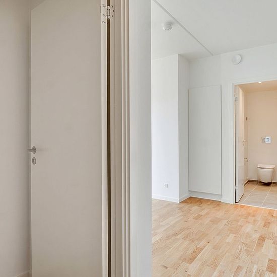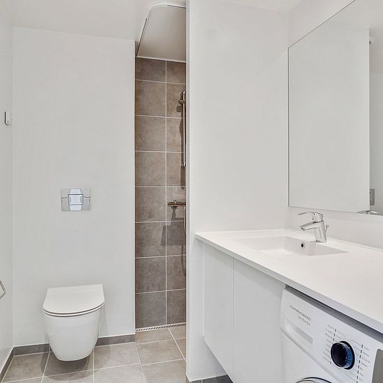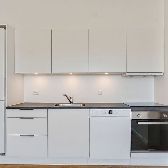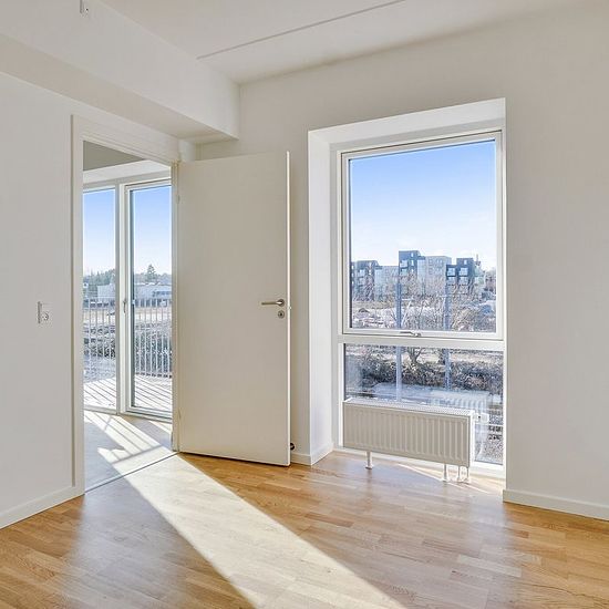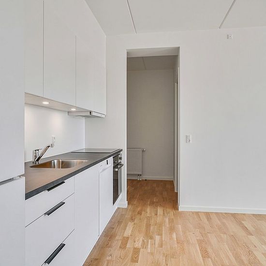 Alle lejligheder har et køkken-alrum i åben forbindelse med stue. I de ét-værelses lejligheder fungerer køkken-alrummet ligeledes som soveværelse. Ellers har du ét eller to separate værelser. Badeværelset er velindrettet med vaskefaciliteter og gulvvarme. Alle lejemål har egen terrasse eller altan. Hårde hvidevarer Boligerne har alt i hårde hvidevarer inklusive vaskemaskine, tørretumbler og opvaskemaskine. Husdyr Lejere kan ansøge om tilladelse til at holde indekat og hund på adressen. Udekatte er ikke tilladt. Se vores samlede husdyrsreg...