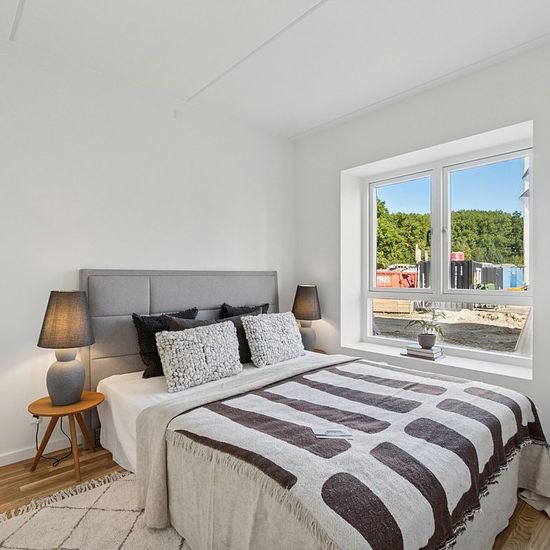 Om lejlighederne: Alle lejligheder er udstyret med altan eller terrasse og boligerne er indrettet i smagfulde materialer. Generelt er der lagt vægt på rummelige leverum indrettet med Invitakøkkener i moderne og stilrene designs, egetræsgulve og flot lysindfald fra de store vinduespartier. I alle lejligheder, er der etableret gulvvarme, herunder også i badeværelset, som er udstyret med energivenlig vaskemaskine og tørretumbler. I lejlighederne er der lagt vægt på gode opbevaringsløsninger i form af skabe og alle lejligheder har adgang til pri...