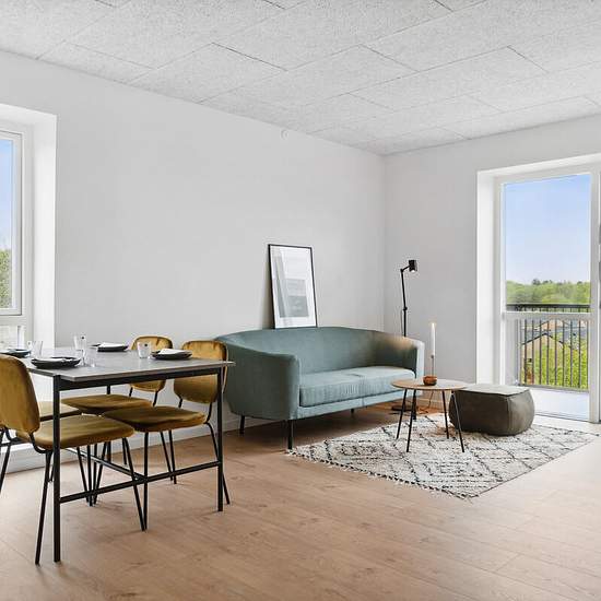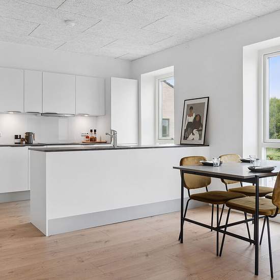 Vores største treværelses lejlighed med stort soveværelse og værelse, køkken-alrum og stue i et samt et moderne badeværelse. Det centrale rum i denne store og lyse lejlighed er det rummelige køkken-alrum, som både indeholder et splinternyt køkken i stilrene materialer samt alt i hårde hvidevarer, plads til spisebord samt stue i ét. Rummet indbyder til hyggelige stunder sammen, og gør det muligt at være sammen, selvom madlavningen skal klares imens. Derudover har du fra dette rum adgang til et depotrum, hvor der er plads til alt det, du gerne...