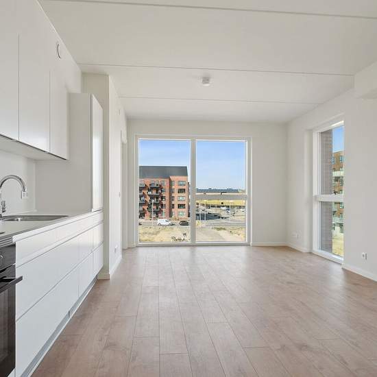 OBS: Det er et krav, at lejere på dette lejemål er 55+ år og uden hjemmeboende børn. Alle boliger er indrettet med en lille entré, badeværelse, et skønt køkken-alrum samt et separat soveværelse. Derudover findes der i 3-værelseslejligheder et lille, ekstra værelse, som passende kan indrettes som kontor. Hver bolig har et depotrum i ejendommens kælder. Lejlighederne har enten egen terrasse eller altan og der er gulvvarme i alle rum. Hårde hvidevarer Boligerne har alt i hårde hvidevarer inklusive vaskemaskine, tørretumbler og opvaskemaskine...