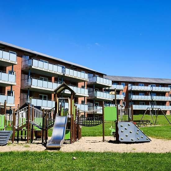 Grønningen 13-41 Afdelingen består af i alt 93 lejligheder på 2, 3 eller 4 værelser i størrelsen 50-85 m2, med god udsigt over området og byen. Boligerne fik i 2017 etableret nye altaner og mellem ejendommene ligger et stort fællesareal med legeplads og beach-volley bane. Grønningen ligger godt placeret med gåafstand til bymidten, uddannelsesinstitutioner, busforbindelser og indkøb. Vedligeholdelse Bebyggelsen er godt vedligeholdt. Bebyggelsens ejendomsfunktionær vedligeholder de fælles grønne områder og tager sig af mindre reparationer i ...