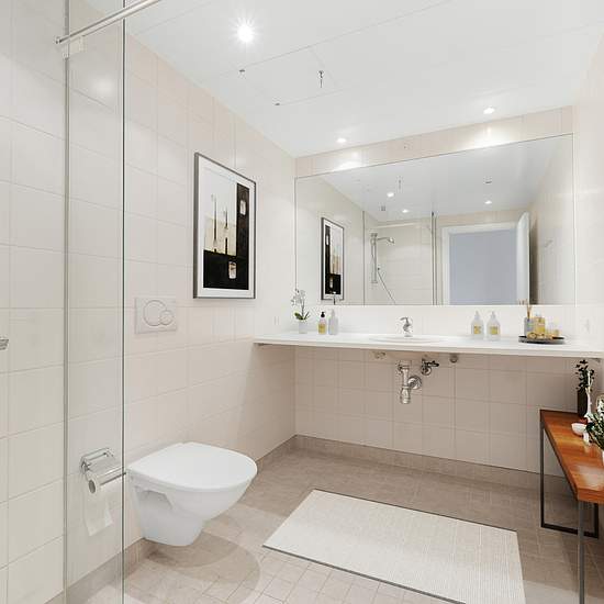 Lejligheden har et rummeligt og indbydende udtryk. Denne stilfulde bolig byder på en åben planløsning, der gør køkkenalrummet til det naturlige samlingspunkt. Når du træder ind i lejligheden, vil du straks lægge mærke til det lyse og moderne køkken, der er udstyret med fuld-hvidevarepakke. Det åbne køkken inviterer til at underholde gæster og inviterer til samvær under madlavningen. Køkkenet indgår elegant i det åbne spiseområde, der let kan rumme et spisebord, hvilket giver gode muligheder for at indrette spise- og dagligstue i samme rum. ...