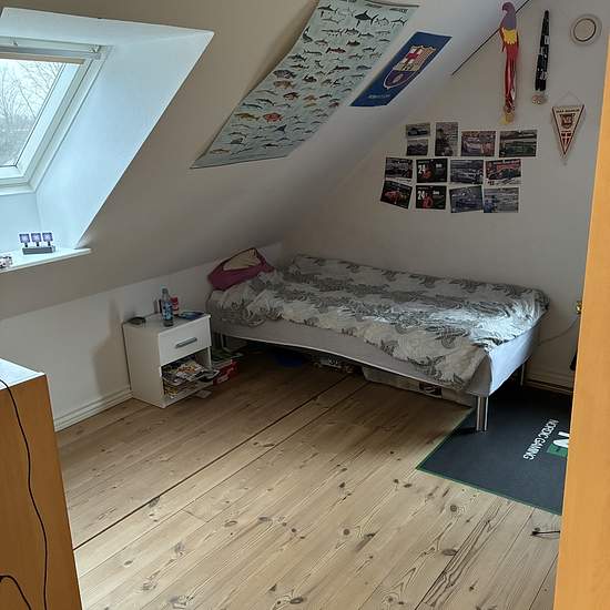 Hyggelig 3 værelses lejlighed på 69 m2 på første etage. Med egen indgang til lejligheden har man trappen der fører op til lejligheden. Når du kommer op på første etage findes lejlighedens badeværelse på højre hånd. Her er der gulvarme og mulighed for tilslutning af egen vaskemaskine og tørretumbler. Forstætter du videre ind i lejligheden møder du som det første det hyggelige køkken. Her kan du også tilslutte din egen opvaskemaskine. Fra køkkenet kan man bevæge sig ind på lejlighedens første værelse. Her er værelsets ovenlysvindue med til ...