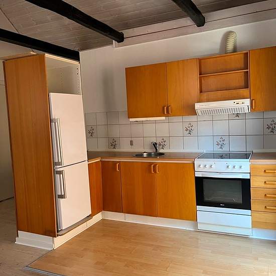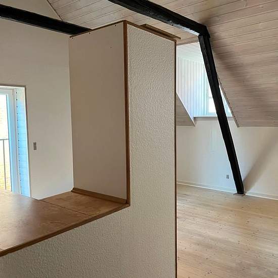 Charmerende 3 værelses lejlighed indeholdende entré, køkken alrum, badeværelse, stue samt soveværelse med skabe. Synlige bjælker i alle rum som skaber et hygge og charme.
