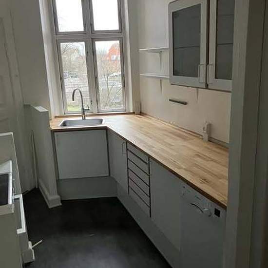 3-vær på Jyllandsgade På 2.sal findes en nyrenoveret lejlighed, klar til indflytning 1/3. Lys og flot "gammeldags" look. Kælder rum medfølger. Gratis parkering bag Føtex. Huslejen er 7000 plus forbrug, 3 mdr's depositum. Yderligere info på