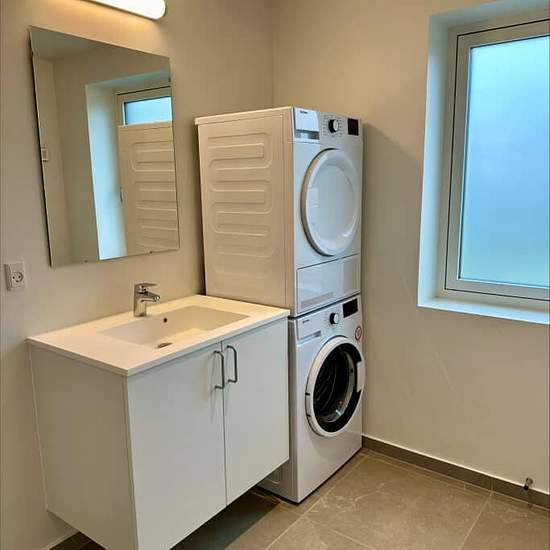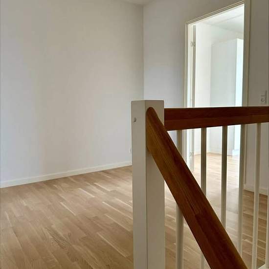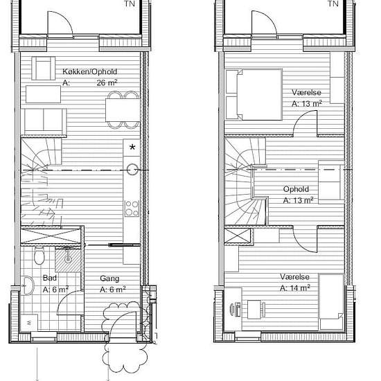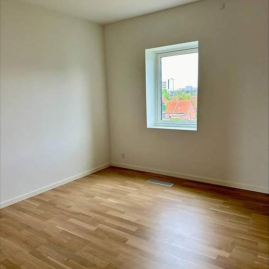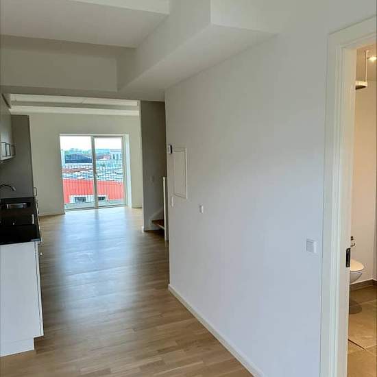 Denne fine lejlighed er fordelt på 2 plan. Når du træder ind, bliver du mødt af en gang med plads til dit overtøj. På den ene side af gangen finder du lejlighedens toilet. Lige fremme åbner køkken-alrummet sig op og er i åben forbindelse med stuen. Fra stuen kan du træde ud på en hyggelig altan. Går du op ad trappen, finder du to fine værelser samt et hyggeligt opholdsrum. Fra det ene værelse har du adgang til lejlighedens anden altan. Alle boligerne er udstyret med moderne hårde hvidevarer. Der er også mulighed for parkering samt depotrum t...