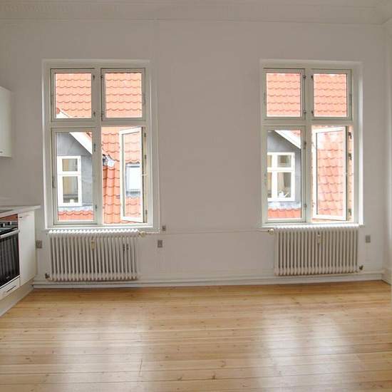 Charmerende 3 værelses lejlighed beliggende i Viborgs midtby. Lejligheden Indeholder: Entre, badeværelse med bruser. Stue og køkken er i et. Køkken med køleskab med fryser, kogeplader, ovn, emhætte og opvaskemaskine samt soveværelse. Der er trægulve i lejemålet. Der er fælles cykelrum og vaskeri sammen med de øvrige beboere. Der er dørtelefon i ejendommen. Der er mulighed for tilkøb af parkerings plads.