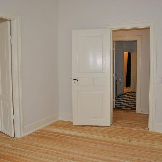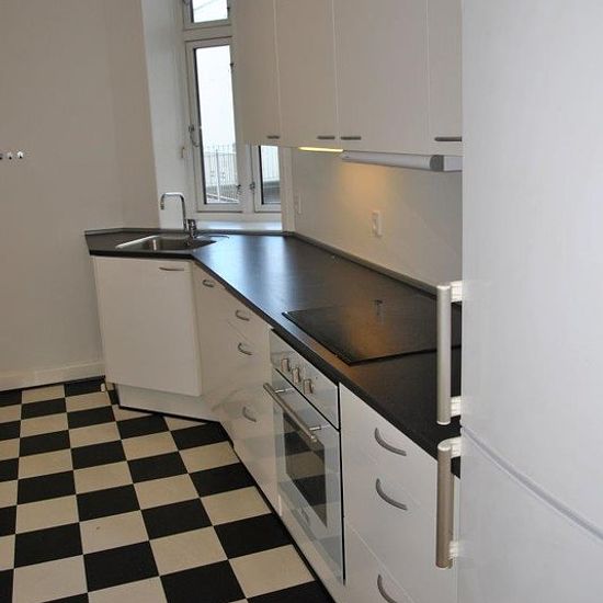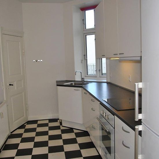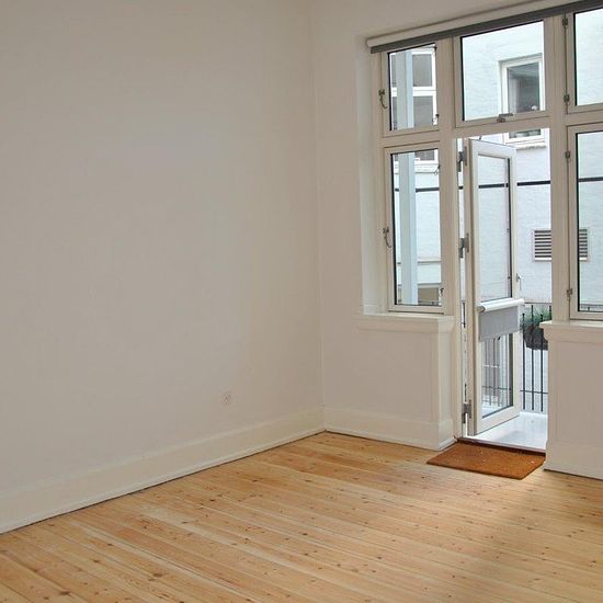 Flot 3-værelses lejlighed på 1. sal med altan og nyligt afhøvlede gulve, beliggende centralt i Viborg. Boligen er placeret i det charmerende Latinerkvarter med kort afstand til caféer, Latinerhaven og andre hyggelige omgivelser. Lejligheden indeholder entré, to stuer samt et stort soveværelse med udgang til altan. Køkkenet er udstyret med køle-/fryseskab, komfur, emhætte og opvaskemaskine. Badeværelset har bruseniche og vaskemaskine. Derudover er der dørtelefon i ejendommen.