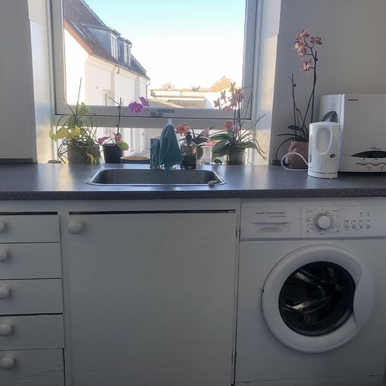 Lille hyggelig et værelses lejlighed på ca. 31 kvm med adgang til eget lille køkken og eget badeværelse. Fra opgangen til lejligheden er der direkte adgang ud til en egen tagterasse.