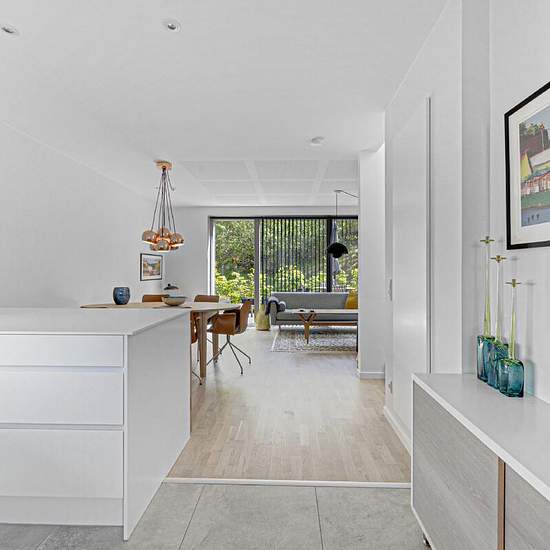Velkommen indenfor i dette dejlige rækkehus på Marshalls Allé - et skønt område i det østlige Aalborg, der siden 2020 står helt færdigt. Tæt på både Gigantium og AAU. Rækkehusets kvadratmeter er fordelt på 2 plan - i stueetagen finder du lejlighedens skønne opholdsrum (køkkenalrum og stue) samt ét af boligens stilrene badeværelser. Fra opholdsrummet har du ligeledes udgang til boligens store terrasse samtidig med, at du finder trappen, der fører dig videre til 1. sal. På 1. salen finder du rækkehusets 3 dejlige værelser, der alle har indbygg...