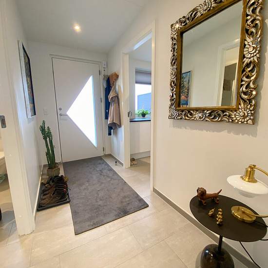 Velkommen til et nyt boligområde bestående af 34 moderne og funktionelle boliger, designet med fokus på komfort, funktionalitet og tilgængelighed. Boligerne er udført handicapvenlige med niveaufri adgang fra stier til entredør, hvilket sikrer nem og sikker adgang for alle. Til hver bolig hører en carport på 15 m² samt et tilhørende redskabsrum på 5 m², begge udført i sort Hardy Plank med pap tag, hvilket giver et stilrent og vedligeholdelsesvenligt udseende. Hver bolig har desuden en sort postkasse med husnummer. Døre og vinduer er lavenerg...