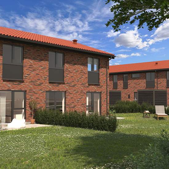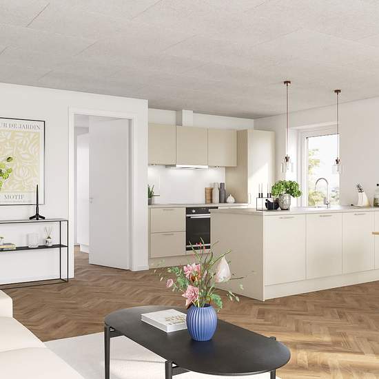 Velkommen til Skæring Enge – Her får du et moderne og bæredygtigt rækkehus i 2 plan på 134 m², hvor alt er gennemtænkt ned til mindste detalje. Her bor du midt i det grønne, i et roligt vænge med fælles legeplads, hvor børnene kan lege trygt, mens du nyder solen på en af husets tre terrasser. Når du træder ind ad døren, mødes du af en indbydende entré med god skabsplads – perfekt til hverdagen. Herfra bevæger du dig videre ind i boligens hjerte: det lyse køkken-alrum, som ligger i åben forbindelse med stuen. De store gulv-til-loft vinduer s...
