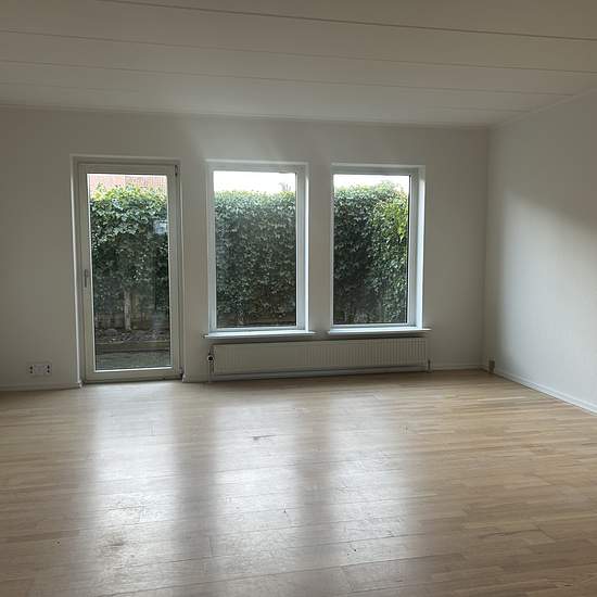 Nyistandsat 4 værelses rækkehus i to plan med egen lille gårdhave. Lejemålet indeholder rummelig entré. Vaskerum med vaske-tørremaskine og fast skab. Hvidt køkken med alt i hvidevarer her i blandt opvaskemaskine. Stor stue med udgang til en dejlig lille ugeneret sydvendt terrasse. På 1. sal er der et badeværelse, et soveværelse med faste skabe samt 2 værelser. Egen p-plads samt skur. Husdyr kan være tilladt, men udelukkende med skriftelig tilladelse med udlejer. Vand og varme afregnes direkte med forsyningsselskabet. Rækkehuset er klar...