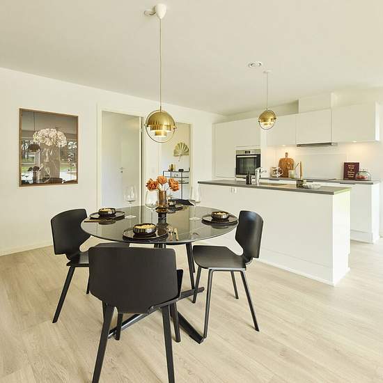 På en fredelig stikvej i Pigernes Kvarter ligger dette indflytningsklare rækkehus på Ane Sørensens Vej – opført i 2023 og skabt til en hverdag, der fungerer. Her får du en veldisponeret bolig i ét plan, hvor hjemmets hjerte er det store, åbne opholdsrum. Køkken, spiseplads og stue flyder naturligt sammen i ét lyst rum med plads til både madlavning, samvær og ro. Terrassedøren binder ude og inde sammen og forlænger sæsonen. Planløsningen er gennemtænkt og nem at indrette: To gode værelser plus et separat soveværelse giver fleksibilitet – ti...