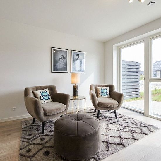 På Sire Eskildsens Vej i Give finder du dette indbydende 4-værelses rækkehus på 115 m² – et hjem med luft, lys og en planløsning, der skaber en naturlig balance mellem fællesskab og privatliv. Her får du god plads både inde og ude, i rolige omgivelser tæt på hverdagens behov. Et hjem, der samler Boligens naturlige samlingspunkt er det store køkken/alrum og stue på hele 50 m². Her flyder rummene sammen i en åben og indbydende indretning, hvor der er plads til både spisebord, sofaområde og hverdagens små pauser. De store vinduespartier trækk...
